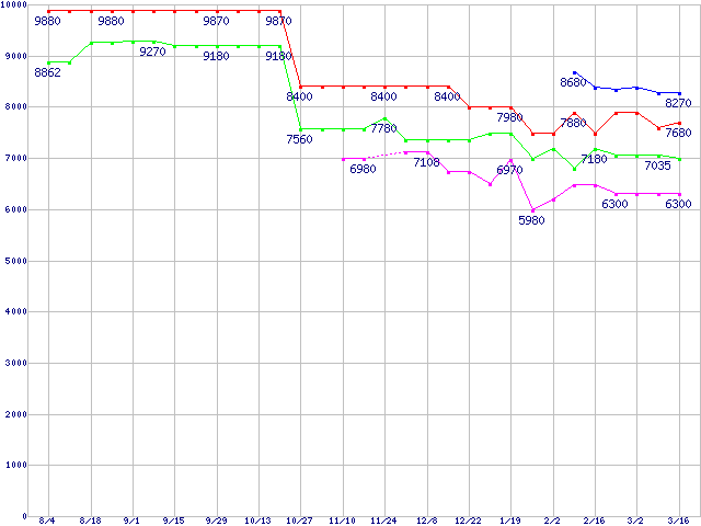 LGA771(FSB 1066MHz,Dual Core,L2 4MB)の最安値推移