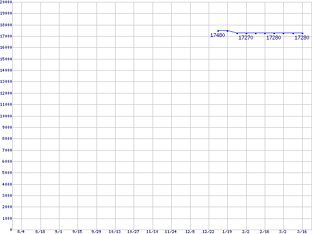 | Core Duo向けSocket 478 (FSB 533MHz,L2 1MB,EM64T対応)の最安値推移 | | | (2006年8月4日~2007年3月16日) |