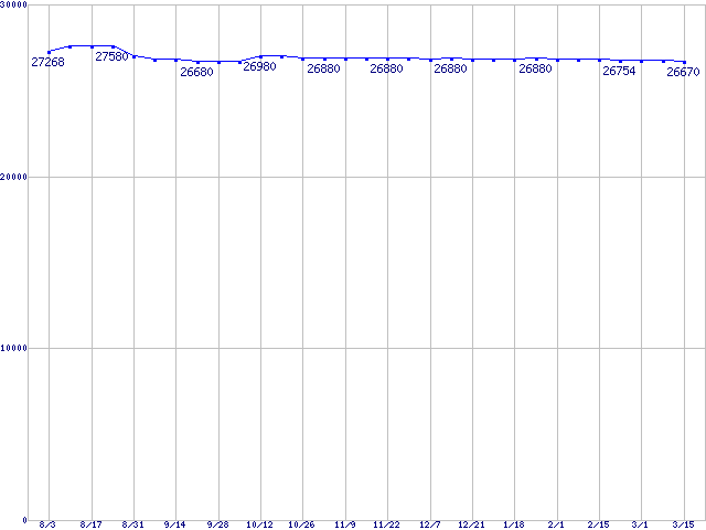 WD Raptor (10000rpm,SATA 1.5Gb/s,16MB,NCQ)の最安値推移