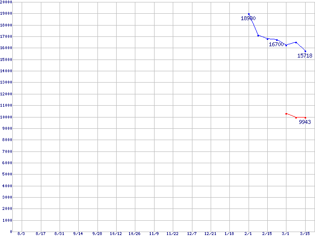 WD Raptor (10000rpm,SATA 1.5Gb/s,16MB,NCQ)の最安値推移