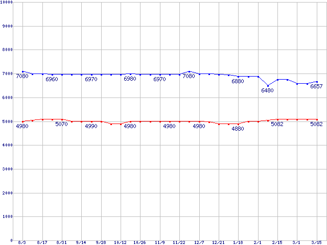 Barracuda 7200.9 (7200rpm,Ultra ATA/100)の最安値推移