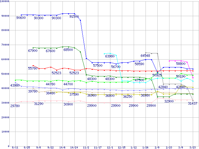 CPU主要製品(最安値3万円~6万円未満)の最安値推移