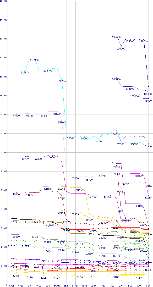 ※製品名をクリックすると個別のグラフを表示します ※点線部は販売店が確認できなかった、または調査データがないことを示します |