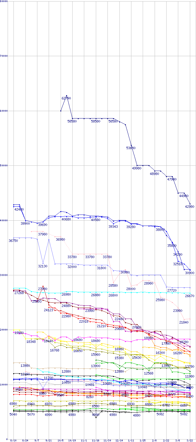 | HDD主要製品の最安値推移 | | | (2006年8月10日~2007年3月22日) |