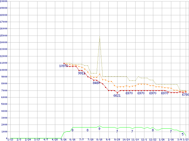 | Sempron 3200+ (1.8GHz,L2 128KB)の価格推移 | | | (2006年1月13日~2007年3月23日) |