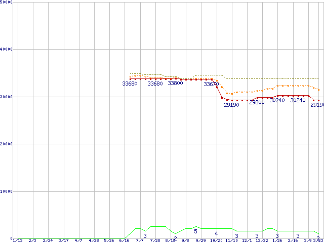 | Turion 64 X2 TL-56 (1.8GHz,512KB×2)の価格推移 | | | (2006年1月13日~2007年3月23日) |