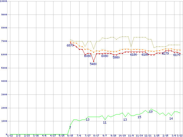 | HDS721616PLAT80 (160GB)の価格推移 | | | (2006年1月12日~2007年3月22日) |