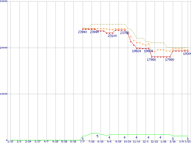 | Turion 64 X2 TL-50 (1.6GHz,256KB×2)の価格推移 | | | (2006年1月13日~2007年3月23日) |