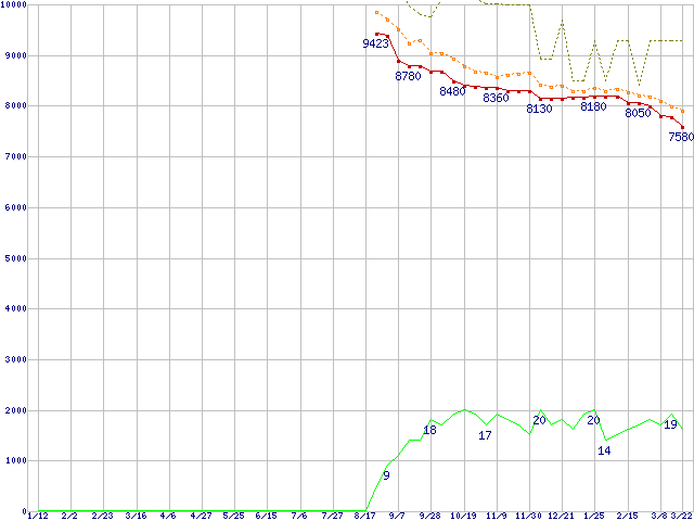 | HDT725025VLA380 (250GB,8MB)の価格推移 | | | (2006年1月12日~2007年3月22日) |