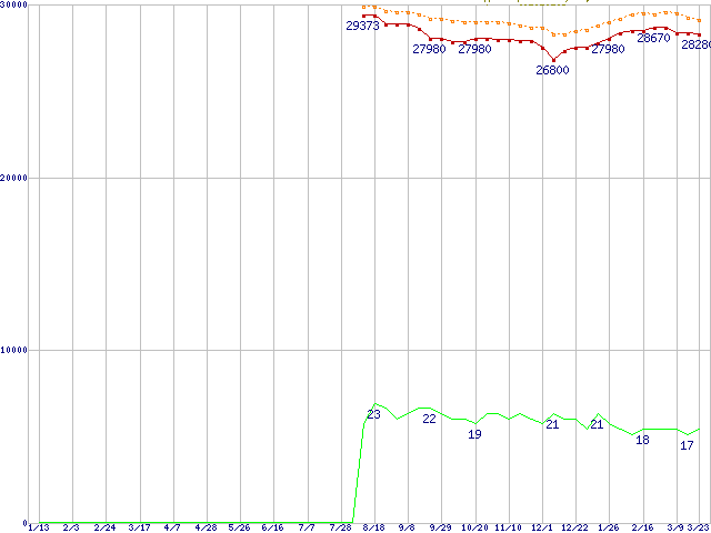 | Core 2 Duo E6400 (2.13GHz,L2 2MB)の価格推移 | | | (2006年1月13日~2007年3月23日) |