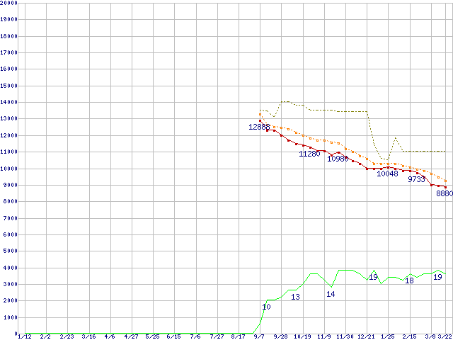 | HDT725032VLA360 (320GB,16MB)の価格推移 | | | (2006年1月12日~2007年3月22日) |
