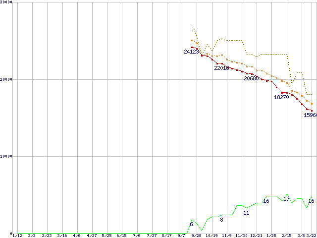 | HDT725050VLAT80 (500GB,8MB)の価格推移 | | | (2006年1月12日~2007年3月22日) |