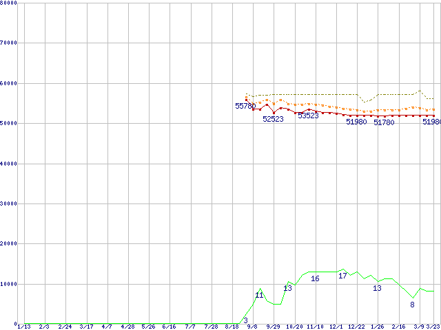 | Core 2 Duo T7400 (2.16GHz,L2 4MB)の価格推移 | | | (2006年1月13日~2007年3月23日) |
