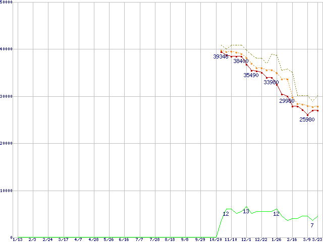 | Athlon 64 X2 5000+ (2.6GHz,L2 512KB×2)の価格推移 | | | (2006年1月13日~2007年3月23日) |