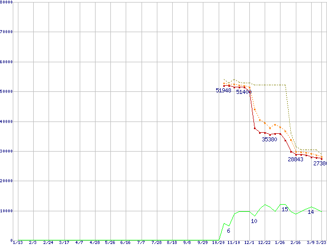 | Athlon 64 X2 5200+ (2.6GHz,L2 1MB×2)の価格推移 | | | (2006年1月13日~2007年3月23日) |