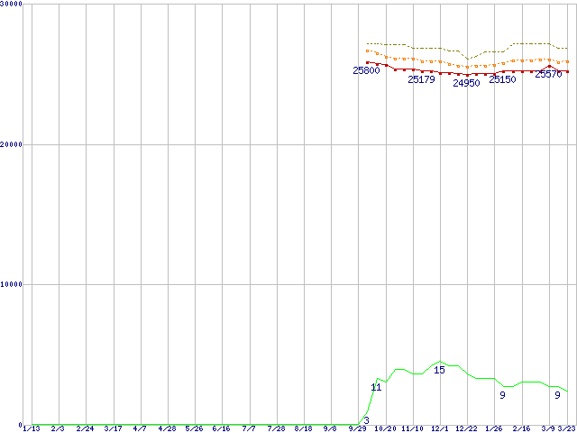 | Core 2 Duo T5500 (1.66GHz,L2 2MB)の価格推移 | | | (2006年1月13日~2007年3月23日) |