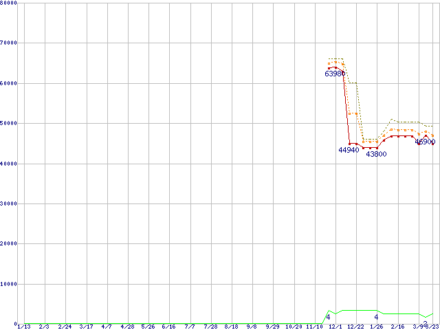 | Xeon E5310(1.60GHz)の価格推移 | | | (2006年1月13日~2007年3月23日) |