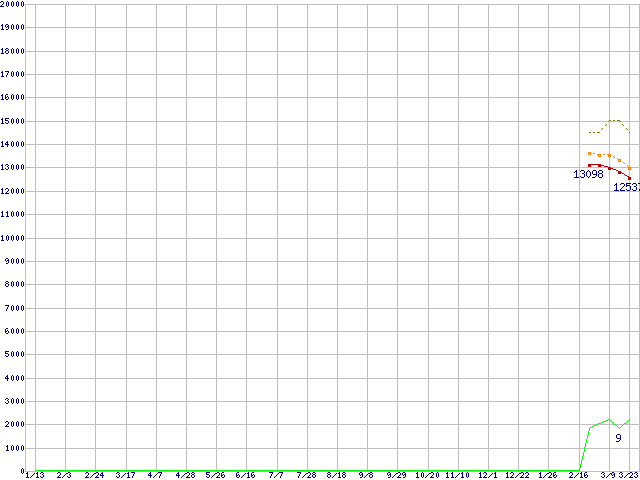 | Athlon 64 4000+ (2.6GHz,L2 512KB)の価格推移 | | | (2006年1月13日~2007年3月23日) |