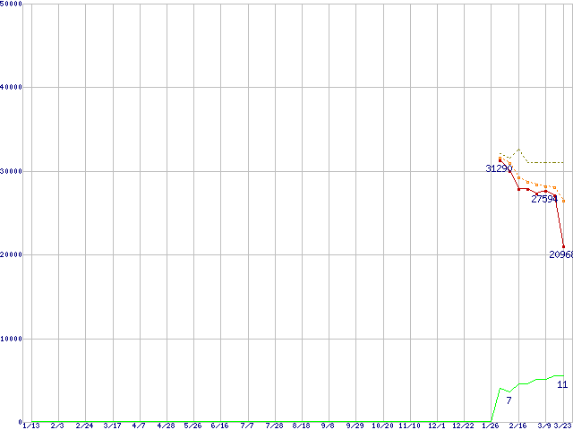 | Athlon 64 X2 4800+ (2.5GHz,L2 512KB×2,TDP65W)の価格推移 | | | (2006年1月13日~2007年3月23日) |