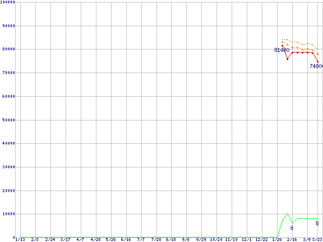 | Athlon 64 FX-70 (2.6GHz) ※2個セットの価格の価格推移 | | | (2006年1月13日~2007年3月23日) |