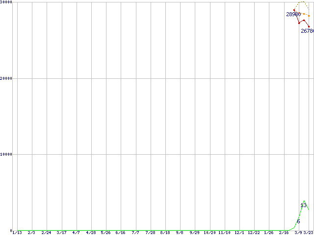 | Athlon 64 X2 5000+ (2.6GHz,L2 512KB×2,TDP65W)の価格推移 | | | (2006年1月13日~2007年3月23日) |