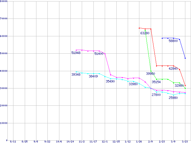 Socket F (FSB 1000MHz,Dual Core,L2 1MB×2)の最安値推移