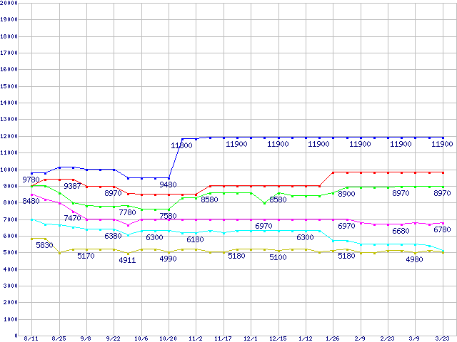 Core Duo向けSocket 478 (FSB 533MHz,L2 1MB,EM64T対応)の最安値推移