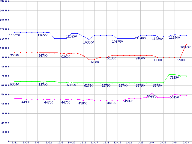 LGA771(FSB 1066MHz,Dual Core,L2 4MB)の最安値推移