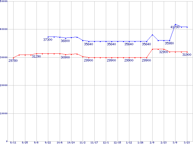 LGA771(FSB 1333MHz,Dual Core,L2 4MB)の最安値推移