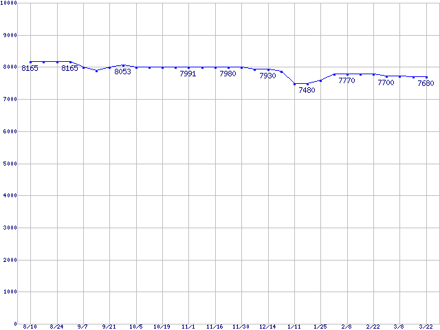 | WD Caviar[Special Edition] (7200rpm,Ultra ATA/100,8MB)の最安値推移 | | | (2006年8月10日~2007年3月22日) |