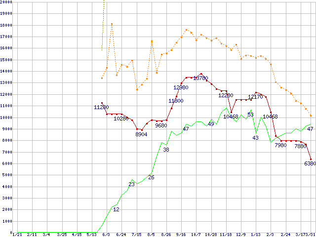 PC2-6400(DDR2-800) DDR2 SDRAM DIMMの最安値推移