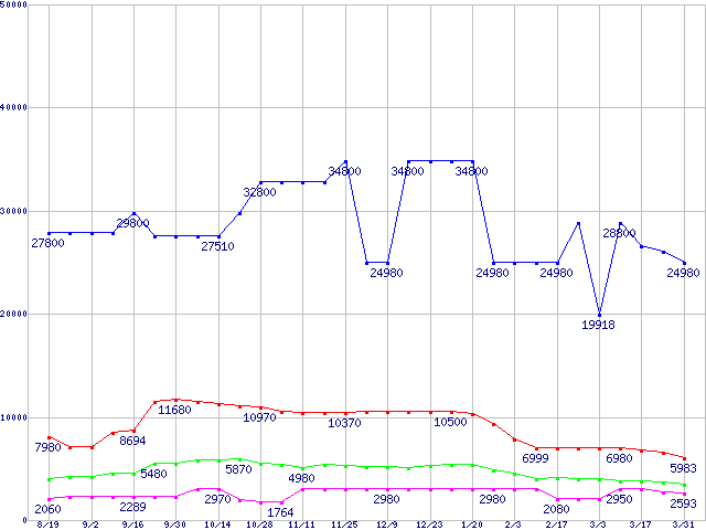 PC3200(DDR400) DDR SDRAM DIMMの最安値推移