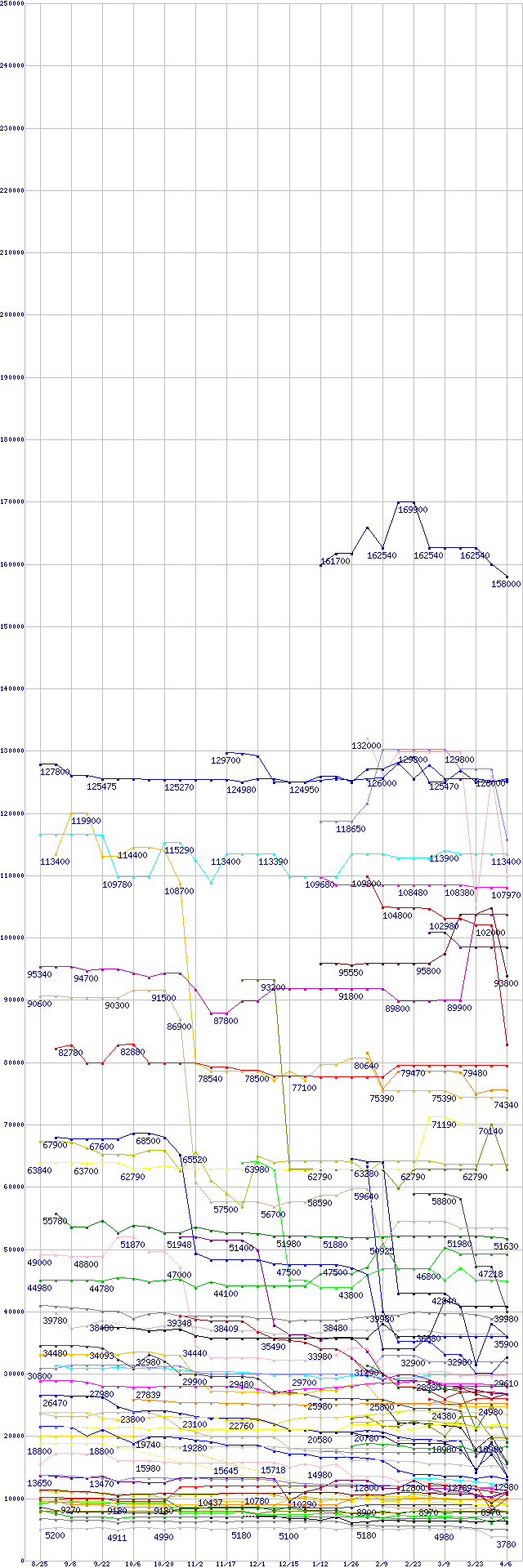 ※製品名をクリックすると個別のグラフを表示します ※点線部は販売店が確認できなかった、または調査データがないことを示します |
