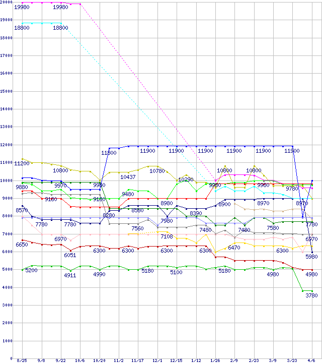 CPU主要製品(最安値1万円~2万円未満)の最安値推移