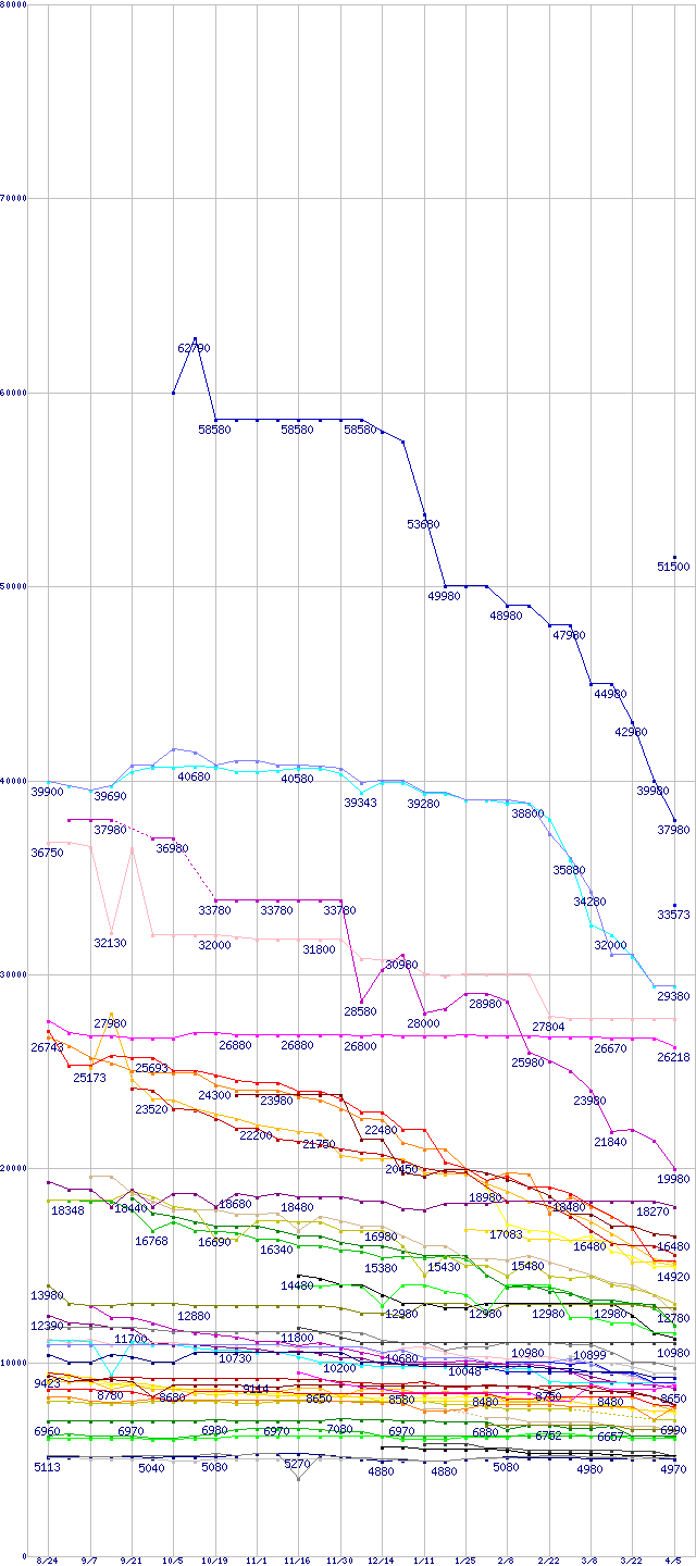 | HDD主要製品の最安値推移 | | | (2006年8月24日~2007年4月5日) |
