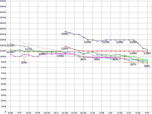 HDD 400~500GB未満の最安値推移