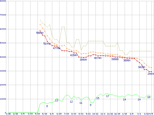| ST3750640AS (750GB,16MB)の価格推移 | | | (2006年1月26日~2007年4月5日) |