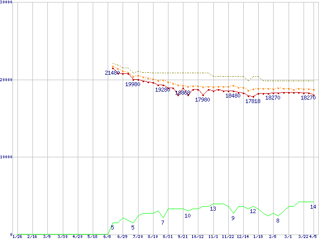 | WD740ADFD (74.3GB)の価格推移 | | | (2006年1月26日~2007年4月5日) |