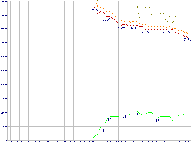 | HDT725025VLAT80 (250GB,8MB)の価格推移 | | | (2006年1月26日~2007年4月5日) |