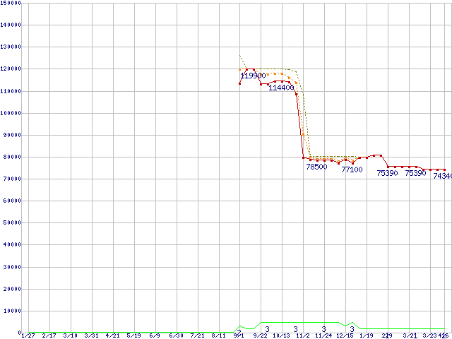 | Opteron 2218 (2.6GHz)の価格推移 | | | (2006年1月27日~2007年4月6日) |