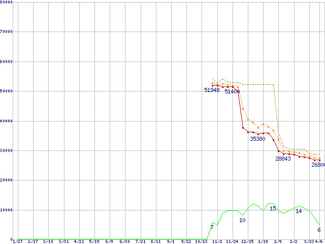 | Athlon 64 X2 5200+ (2.6GHz,L2 1MB×2)の価格推移 | | | (2006年1月27日~2007年4月6日) |
