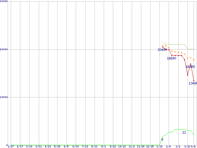 | Athlon 64 X2 4000+ (2.1GHz,L2 512KB×2,TDP65W)の価格推移 | | | (2006年1月27日~2007年4月6日) |
