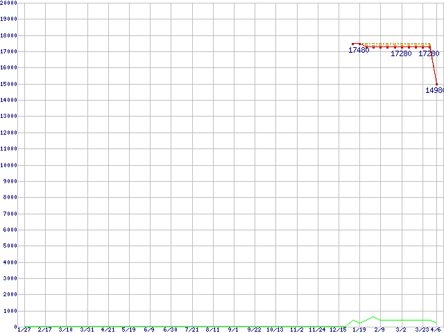 | Celeron M 520 (1.60GHz)の価格推移 | | | (2006年1月27日~2007年4月6日) |