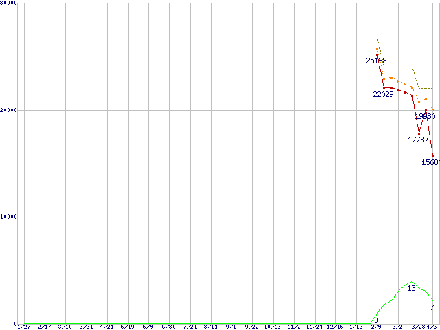 | Athlon 64 X2 4400+ (2.3GHz,L2 512KB×2,TDP65W)の価格推移 | | | (2006年1月27日~2007年4月6日) |