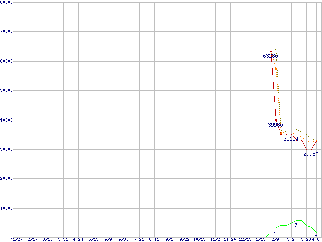 | Athlon 64 X2 5400+ (2.8GHz,L2 512KB×2)の価格推移 | | | (2006年1月27日~2007年4月6日) |