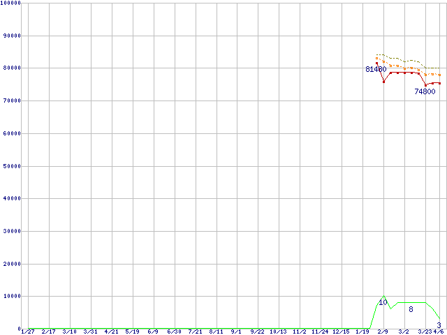 | Athlon 64 FX-70 (2.6GHz) ※2個セットの価格の価格推移 | | | (2006年1月27日~2007年4月6日) |