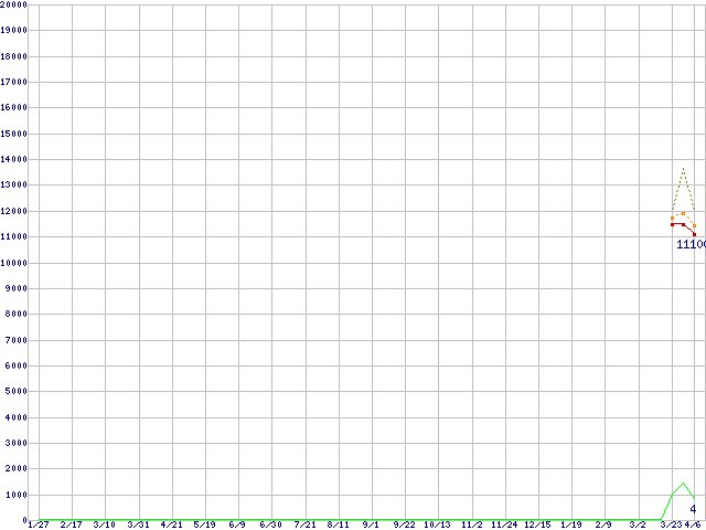 ※このグラフは過去のデータも税率5%相当に調整した税込み相当額のグラフです。 税率変更や、総額表示方式導入(2004年4月)の影響は除いています。 | | | ●凡例 | 最安値 (点線部は販売店未確認 または未調査) | 平均値 | 最高値 | ショップ数 |