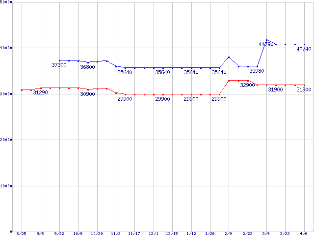 LGA771(FSB 1066MHz,Dual Core,L2 4MB)の最安値推移