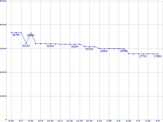 Barracuda 7200.9 (7200rpm,Ultra ATA/100)の最安値推移