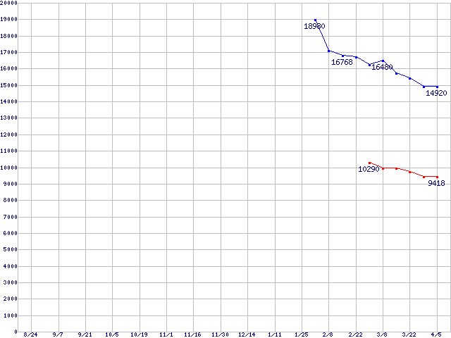 WD Raptor (10000rpm,SATA 1.5Gb/s,16MB,NCQ)の最安値推移